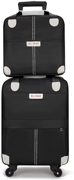 Black Trolley Bag with Support Bar and Zipper Pocket Ca...