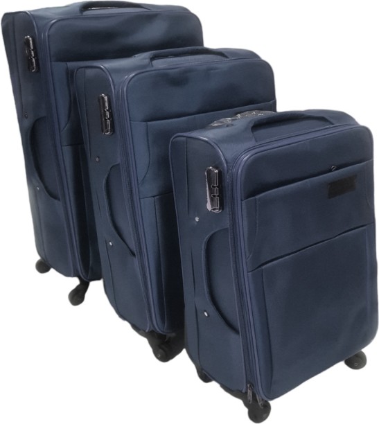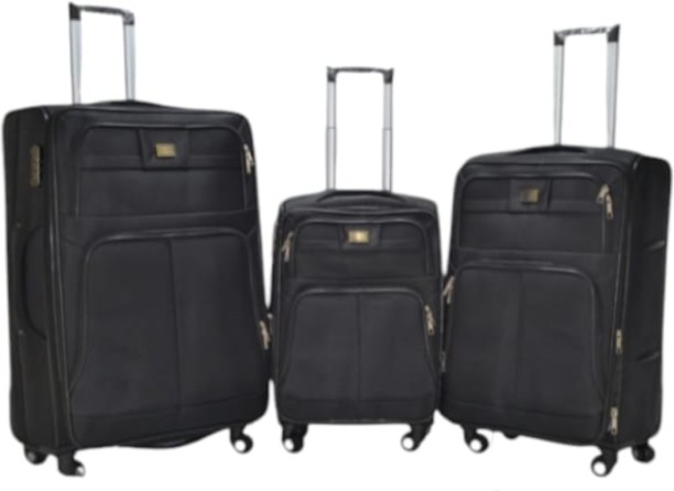 Fabric 3-Piece Soft Luggage Trolley Set – Black Cabin &...
