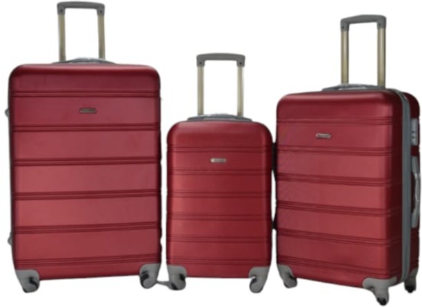 3-Piece Retro Big Line ABS Luggage Set – Red with Keyri...