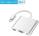 P Concepts USB C Thunderbolt3/4 Docking Station VGA 1080P HD Display USB3.0 PD 60W Fast Charging 3In1 Hub for Laptop HDTV Monitor Projector Docking Station For Laptop (White)