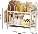 XinShang Heavy Duty Dish Drying Rack, Kitchen Organiser with Utensil Holder 2-Tie Steel Dish Drying Kitchen Rack (White)
